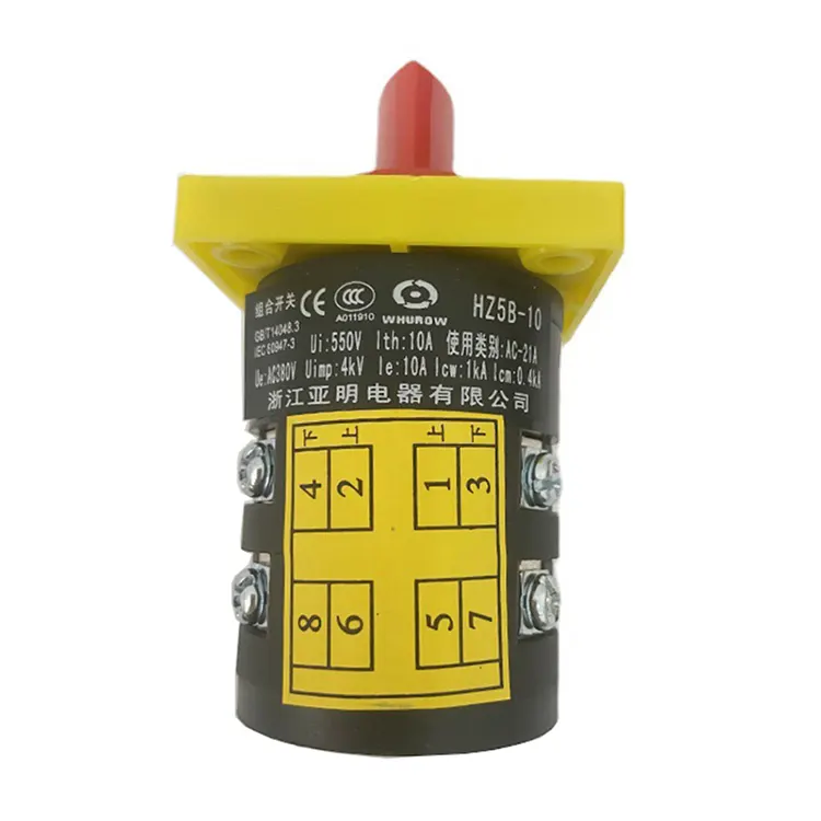 يعد مفتاح الكاميرا الدوارة المختلط بثلاثة أوضاع 10A نسخة محسنة من سلسلة HZ5. إنها مناسبة لدوائر التيار المتردد 50 هرتز مع جهد تشغيل مقنن يصل إلى 380 فولت، وتستخدم لبدء تشغيل المحرك وإيقافه وعكس اتجاهه وتنظيم السرعة.