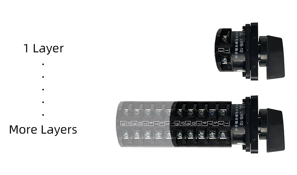 يدمج مفتاح الكامة الدوارة ثلاثي الأوضاع LW8 10A بين التطبيق العملي والسلامة والجماليات، مع الميزات البارزة التالية: