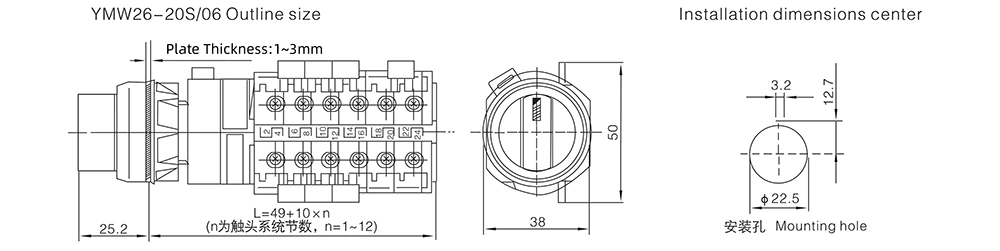 يعد مفتاح الكاميرا المتصاعد ذو الفتحة الواحدة 20A بمثابة بلورة لسنوات YAMING من الابتكار التكنولوجي وخبرة التصنيع. بالإضافة إلى مفتاح المقبض الدوار الأساسي، تم تصميمه لتحقيق التحكم والتحويل السلس والموثوق في الدائرة، ويعمل كمكون أساسي لتحسين كفاءة التحكم الصناعي وأداء المعدات. يعتمد المفتاح تصميم تركيب ثقب مركزي بفتحة 22.5 مم، مما يسهل التجميع السريع والمريح في لوحات المعدات المختلفة.