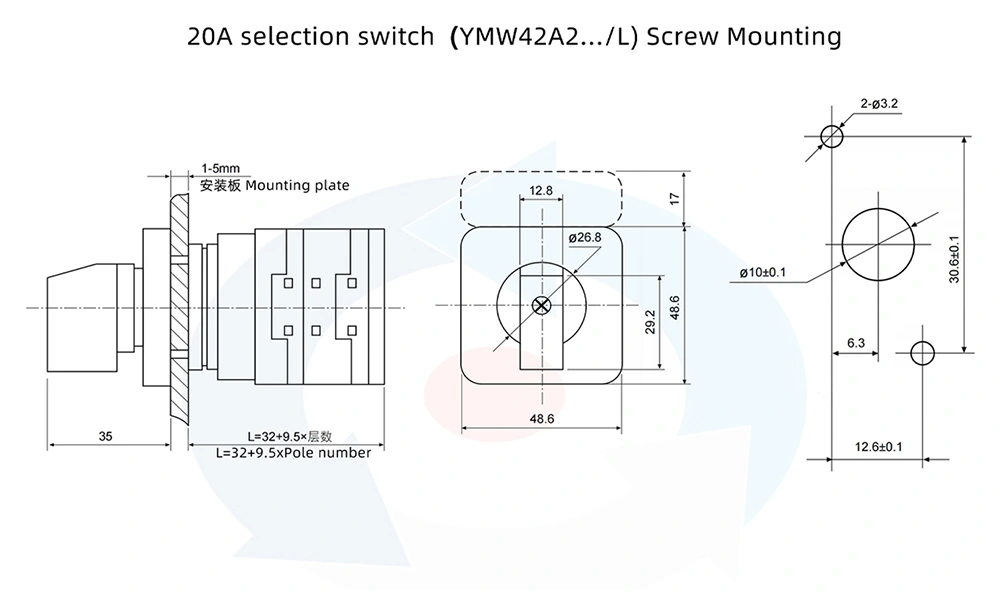 - تحديد المواقع المرن وتكوين الطبقة: يدعم مفتاح كامة التحكم المزدوج في الطاقة 20 أمبير زوايا تحديد المواقع المتعددة، بما في ذلك 30 درجة، 45 درجة، 60 درجة، 90 درجة، ويمكن أن يحتوي على ما يصل إلى 12 موضع تشغيل و1-12 طبقة مفاتيح. يمكن تحديد زوايا تحديد المواقع المختلفة وتكوينات الطبقة وفقًا لمتطلبات التحكم الفعلية.
