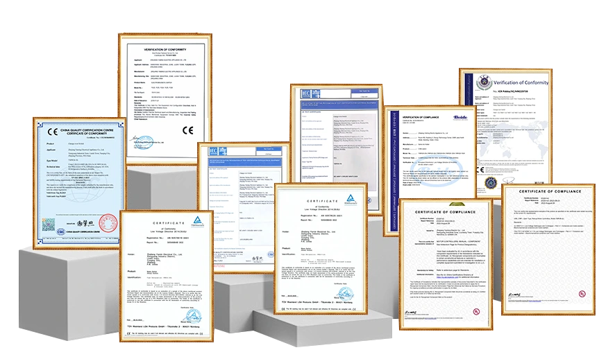 فيما يتعلق بمراقبة الجودة، حصلت الشركة على شهادة نظام إدارة الجودة ISO9001، وشهادة 3C الوطنية، بالإضافة إلى شهادة TUV الألمانية، والاتحاد الأوروبي CE، والولايات المتحدة UL وغيرها من الشهادات الرسمية الدولية، وبما يتماشى مع المعايير البيئية ROHS.