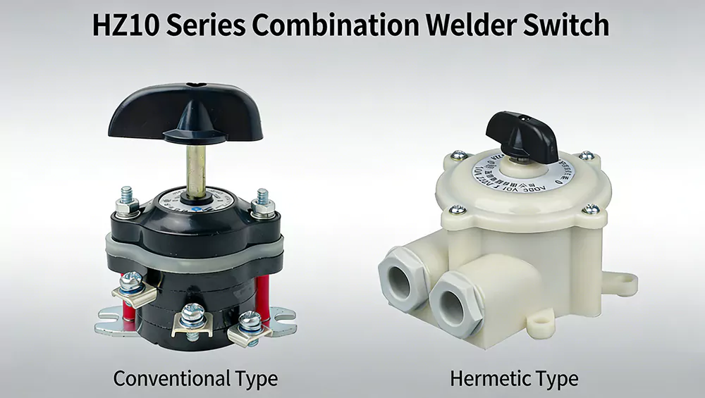 تركيب HZ10-100E119 أمام اللوحة، يوفر المفتاح المختلط 100 أمبير تعديلًا دقيقًا لتيار اللحام تحت 100 أمبير. مناسبة للتحكم في الدوائر الرئيسية والمساعدة في المعدات الكهربائية، وتعمل على أنظمة تيار متردد 50/60 هرتز بجهد يصل إلى 380 فولت.